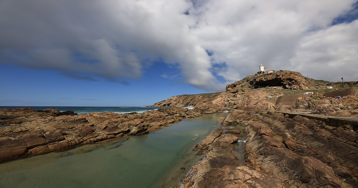A sunny, wind-still day makes for a serene scene of the Cape St. Blaize Lighthouse in Mossel Bay.